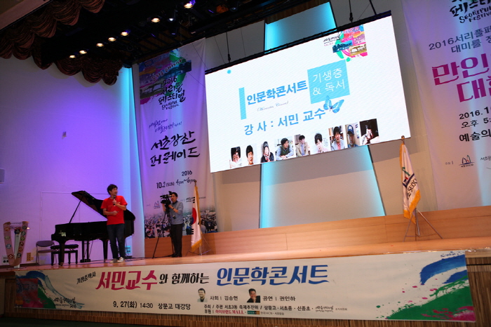 2016년 9월 27일, 2016 서리풀 페스티벌의 화려한 시작을 대한민국 최고의 기생충박사 서민교수와 함께하는 '인문학 콘서트'를 상문고 대강당에서 개최하였습니다.